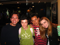 Pues con la novedad que tras el exito del estreno de "Hoteles de Puebla" en el coctail mis buenos amigos Mau y Toño Fraga me llegaron con dos buenas noticias. Primera: les encanto el numerito. Segunda: una invitación al DF a ver "Hoy no me puedo Levantar". Acepté agradecido, fuimos acompañados de mi amiga Addy. Y como ellos ya son asiduos visitantes pues tuvimos la oportunidad de lograr estas fotos con el elenco.